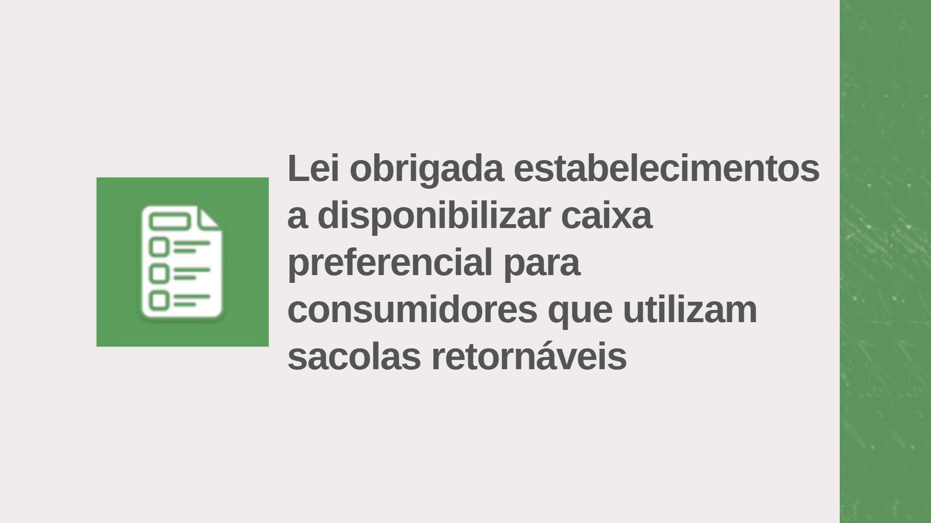 Estabelecimentos que possuam mais de 10 caixas são obrigados a disponibilizar 10% de caixas preferenciais para consumidores que utilizam sacolas retornáveis para acondicionamento e transporte das mercadorias adquiridas.
