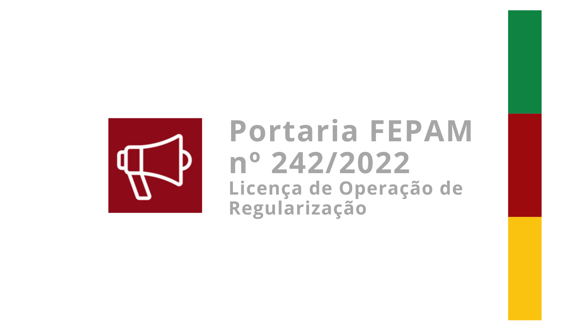 No dia 09 de junho de 2022 a FEPAM publicou a Portaria nº 242/2022 a qual define o conceito de licença de operação de regularização (LOR) e estabelece os procedimentos e critérios para enquadramento na modalidade, revogando a Portaria FEPAM nº 115/2019.